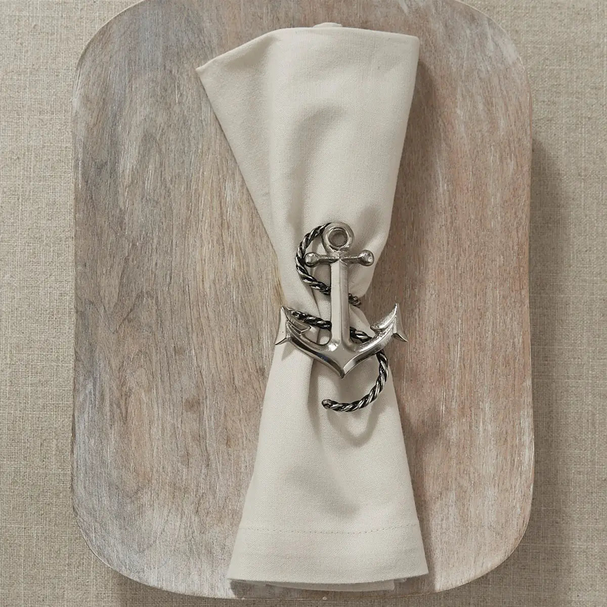 Inspired by classic nautical decor, this adorable napkin ring set proves that even the tiniest touches can add to chic decor. The charming anchor motif is skillfully crafted with attention to detail and offers a generously sized ring. This subtle set will be the ideal complement to your holiday linens.