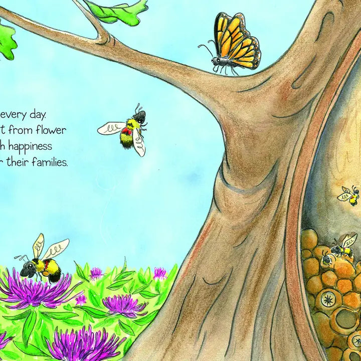 Beatrix discovers a wild bumblebee nest on her way home from school and finds herself drawn to their busy world. When her bees mysteriously disappear, Bea hatches a plan to bring them back. Can Bea inspire her school and community to save the bees? Bees provide us with valuable resources, and some types of bees are in danger of disappearing forever. But ordinary people (and kids!) can help save them. Filled with fascinating facts about bumblebees and ideas to help preserve their environment, Bea's Bees encourages kids to help protect bees and other pollinators.