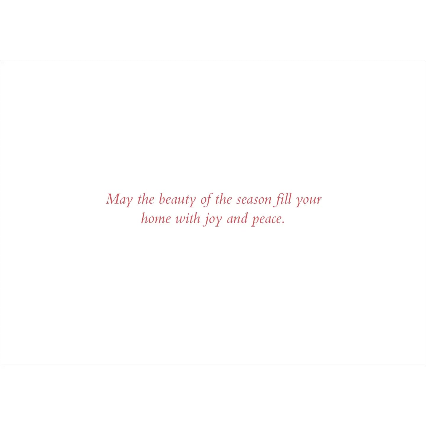 Quality card stock supports pen beautifully. Flecks of silver foil enhance the image. Inside greeting: May the beauty of the season fill your home with joy and peace.
