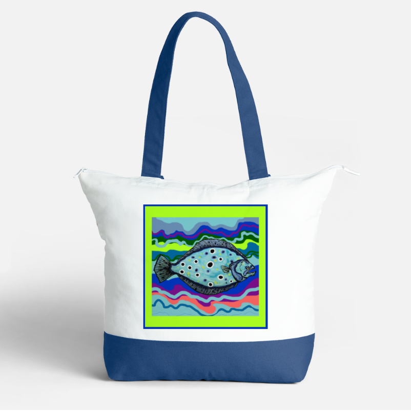 Features one of the following on each bag: bonita, flounder, pelican, red drum, albacore tuna (purple or red background)