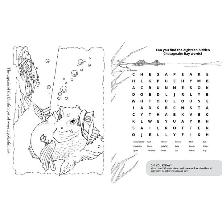 You're invited to explore a variety of puzzles, mazes, and coloring pages that will encourage you to draw or use stickers to create a Chesapeake Bay scene, learn about things that don't belong in the bay, and discover some fun facts along the way. This is so much more than a coloring book. It's the Chadwick the Crab Chesapeake Bay Academy, and all are welcome! 48 pp | 40+ b&w illustrations