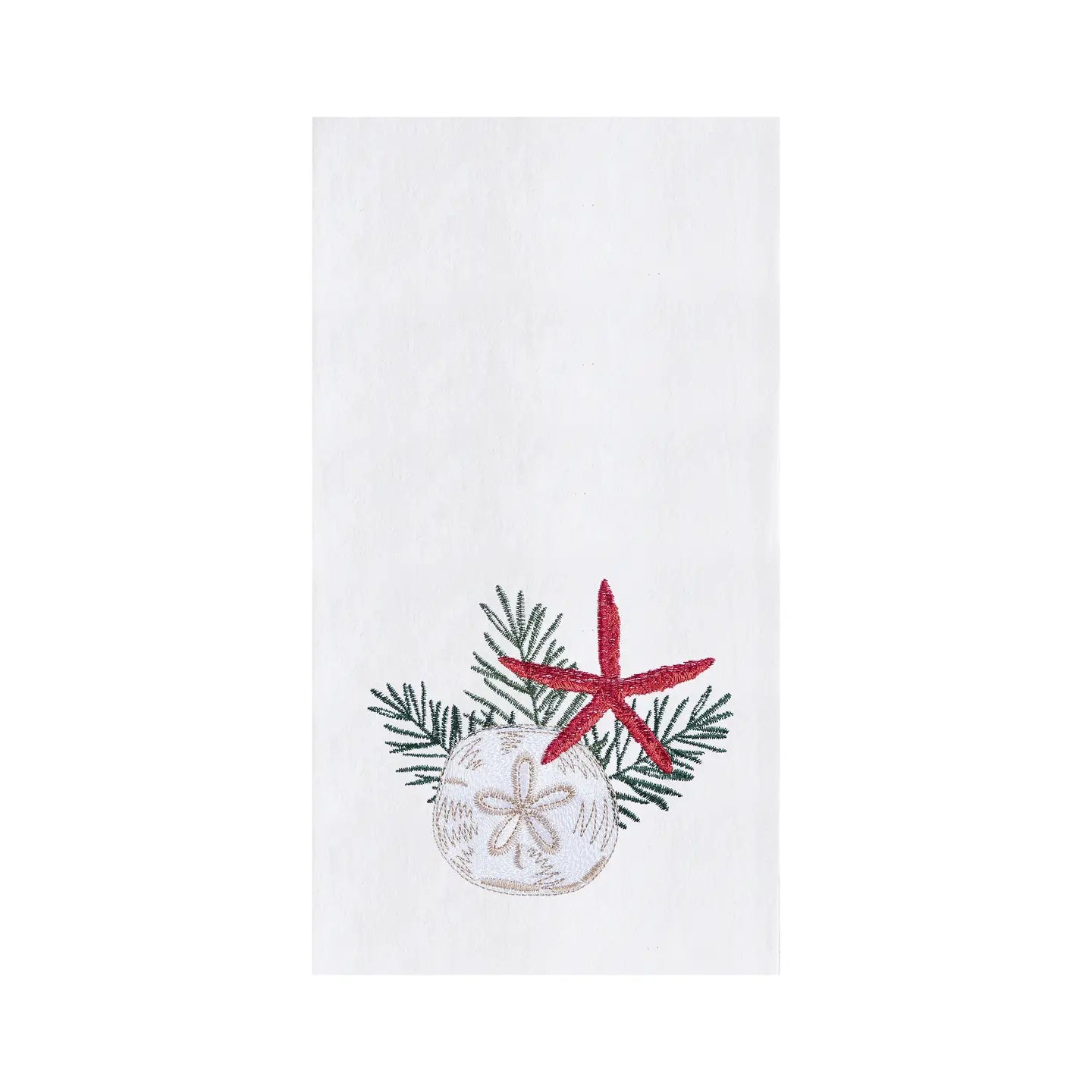 This festive kitchen towel features a coastal themed design, with a starfish, sand dollar, and greenery. Crafted from high-quality cotton fabric, this stylish towel is sure to bring cheer to your home this holiday season.