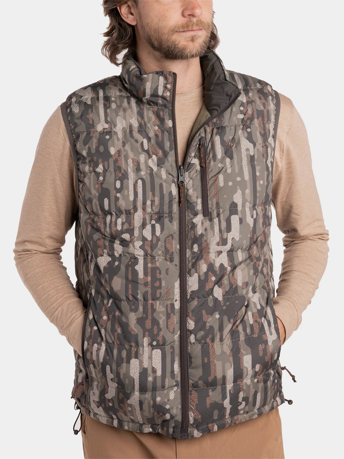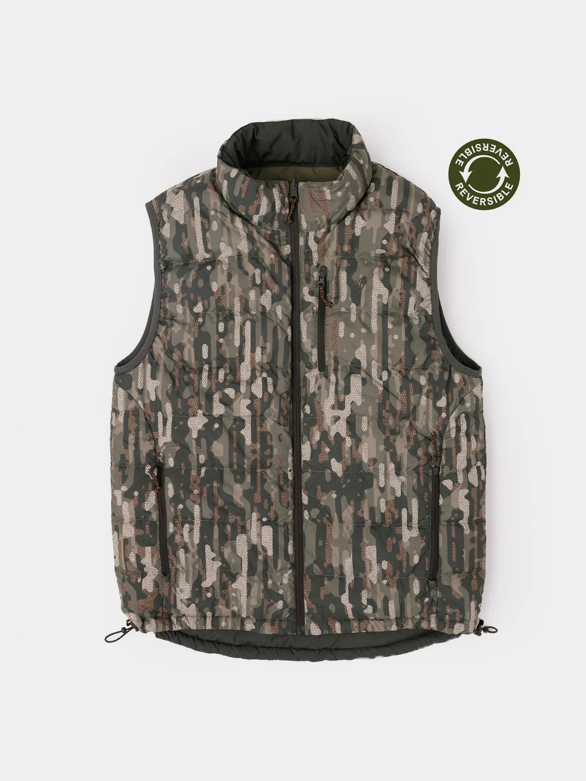 Ultra-warm, lightweight down vest with two reversible colorways for hunt and everyday use.