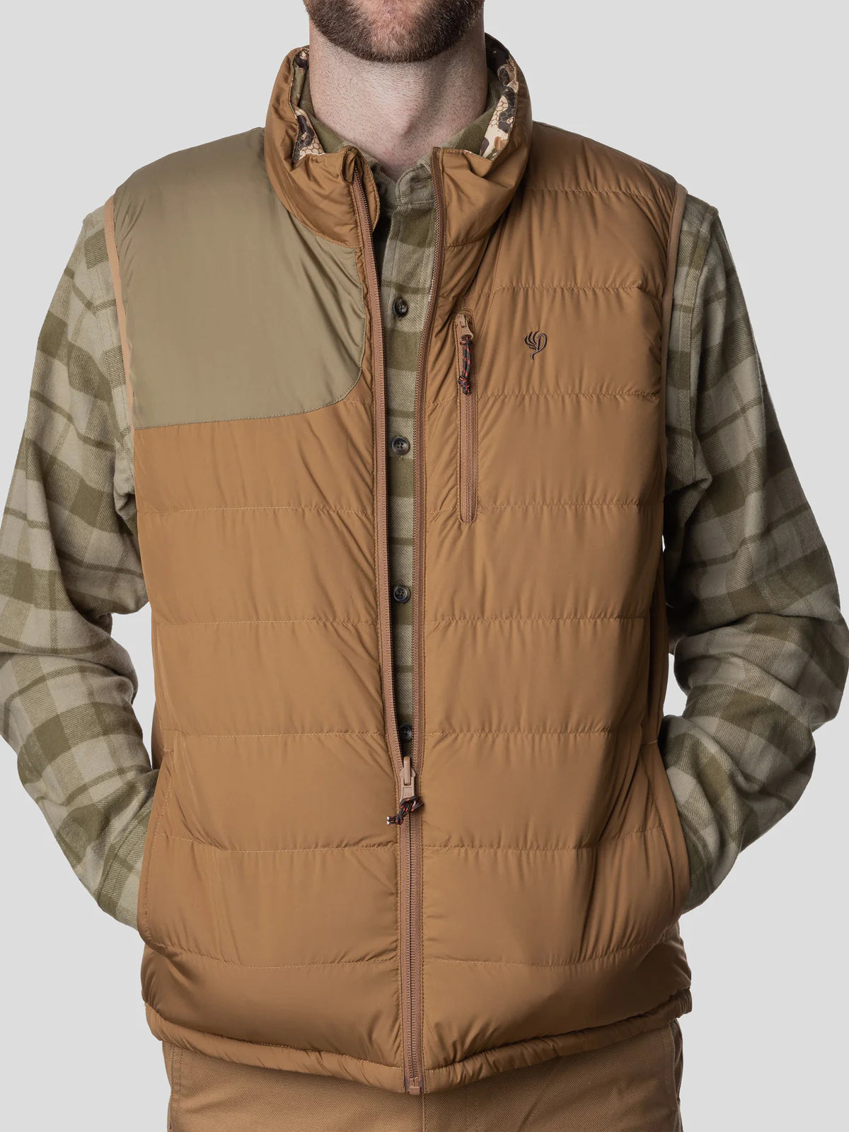 Large - Ultra-warm, lightweight down vest with two reversible colorways for hunt and everyday use.