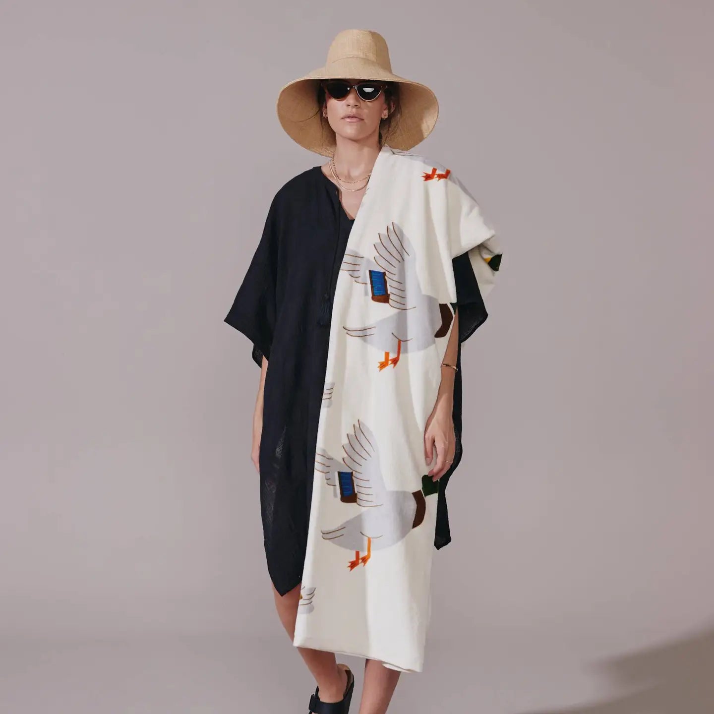 Duck design oversized beach towel. The gorgeous off-white color compliments the duck design perfectly. This is the most comfortable towel ever.