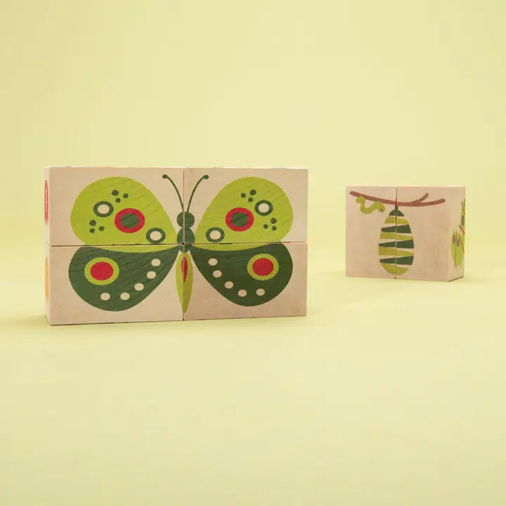 This floral frenzy is busting out with fun! Build your own garden scene. Six blocks feature tulips, colorful flowers, caterpillars, a butterfly, and more. Can you count the petals? How will you measure the inchworm with the ruler? More than colorful educational blocks, this artful set is a decorative puzzle, too. It’s blooming beautiful! * 6 - 3 x 1.75 inch blocks * Made using sustainable Midwestern basswood * Printed with safe-to-touch inks * 100% made in the USA * Ages 2+