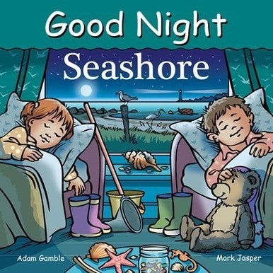 Good Night Seashore features beaches, the ocean, crabs, shorebirds, marshes, dunes, starfish, sea turtles, seaweed, urchins, seashells, clams, lobster boats, plants, jellyfish, minnows, seaglass, fishermen, dune buggies, surfers, swimmers, sand castles, and more. Grab your bathing suit and towel—it’s time to explore the fabulous seashore.