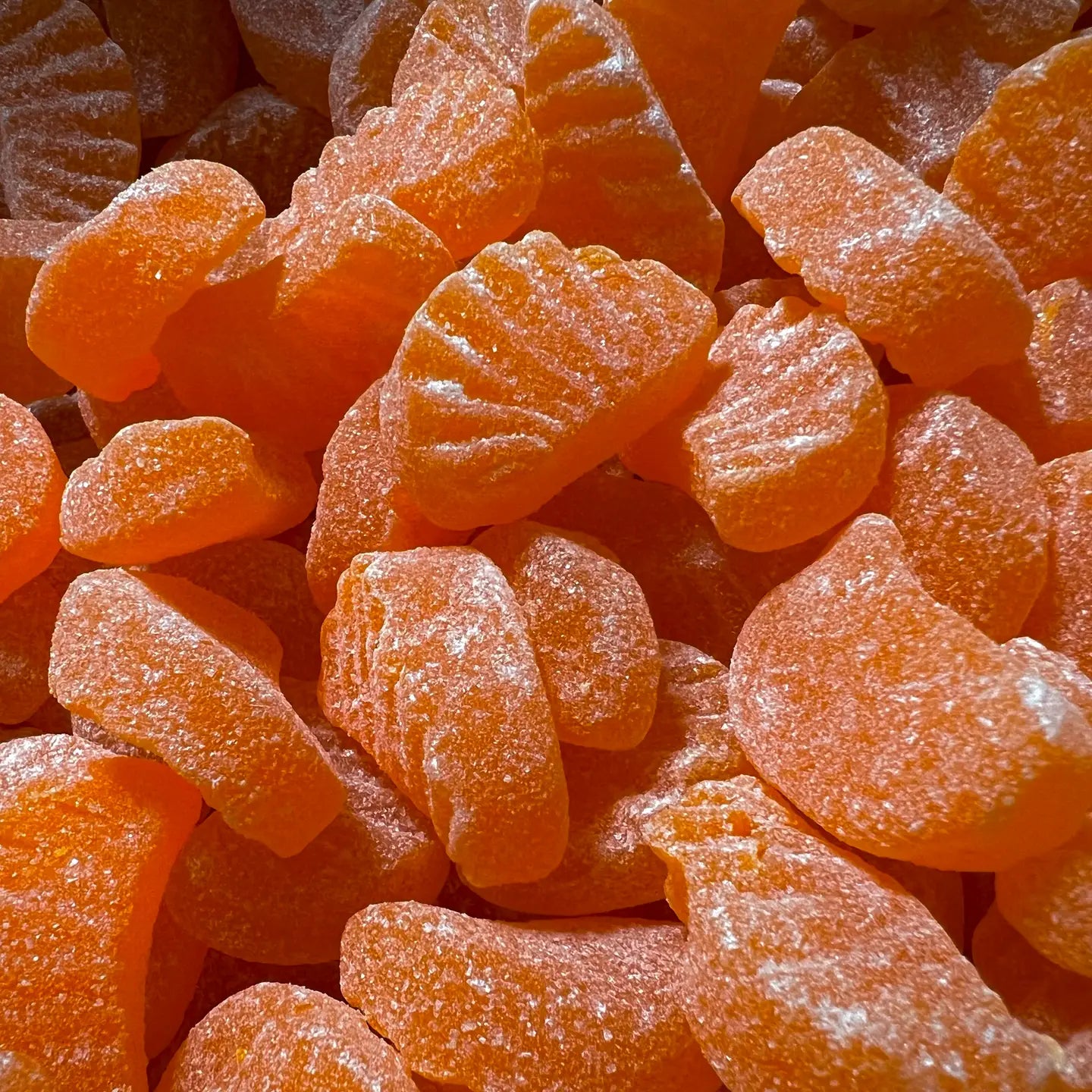 These gourmet Orange slices are sure to bring back memories. Nostalgic Oranges slices are very flavorful and have unique ridges on each slice. Great bright color to bring your displays alive. Each slice is rolled in sanded sugar and individually packaged into 3/4th Pound Packages.