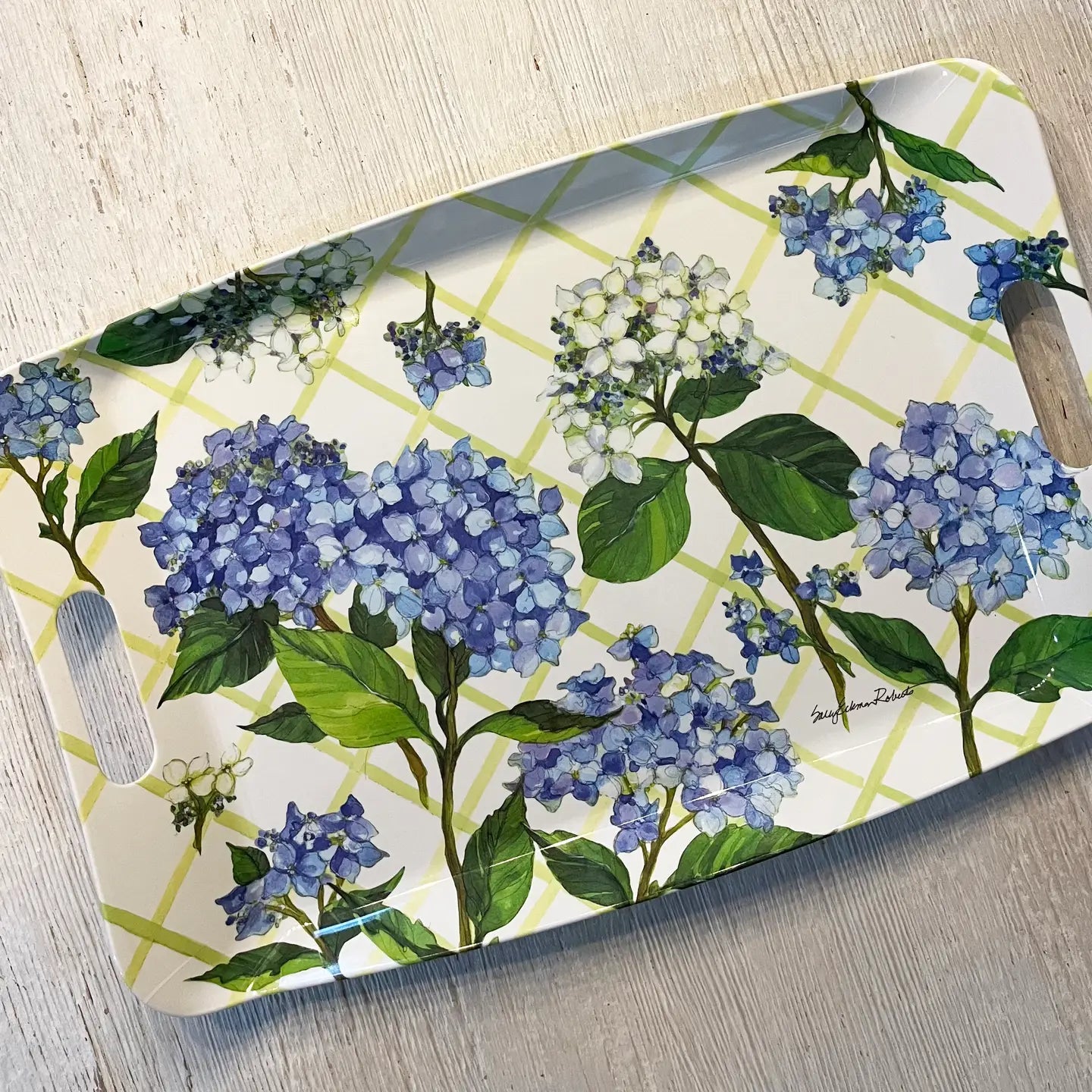 Hydrangea Lattice Floral Bamboo Serving Tray