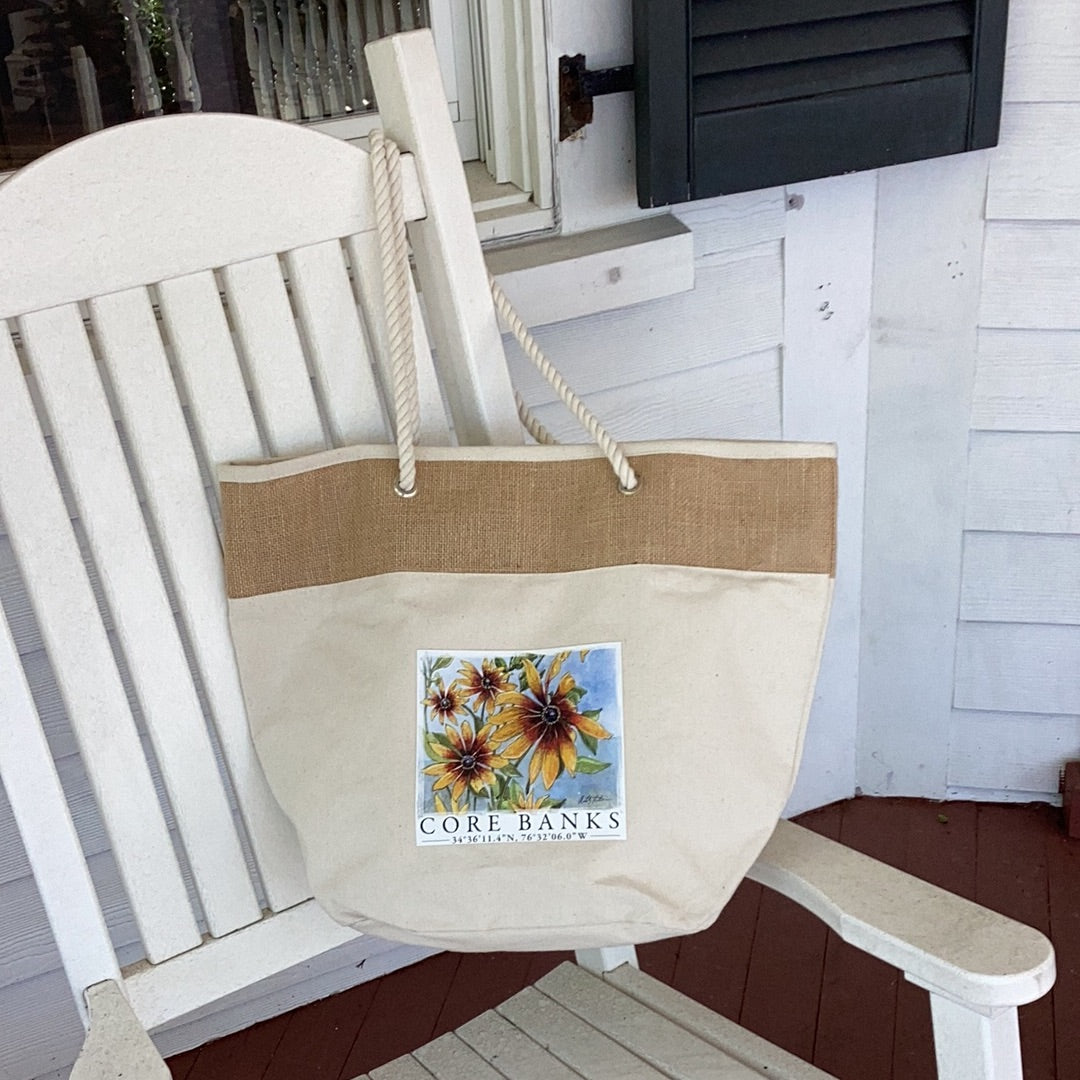 Jobell flowers image with Core Banks longitude and latitude coordinates. This sturdy 12 oz. cotton tote with jute accent is the perfect bag for the on-trend carrier. Very large soft cotton rope handles are accented perfectly by the natural jute accent. Large open main compartment.