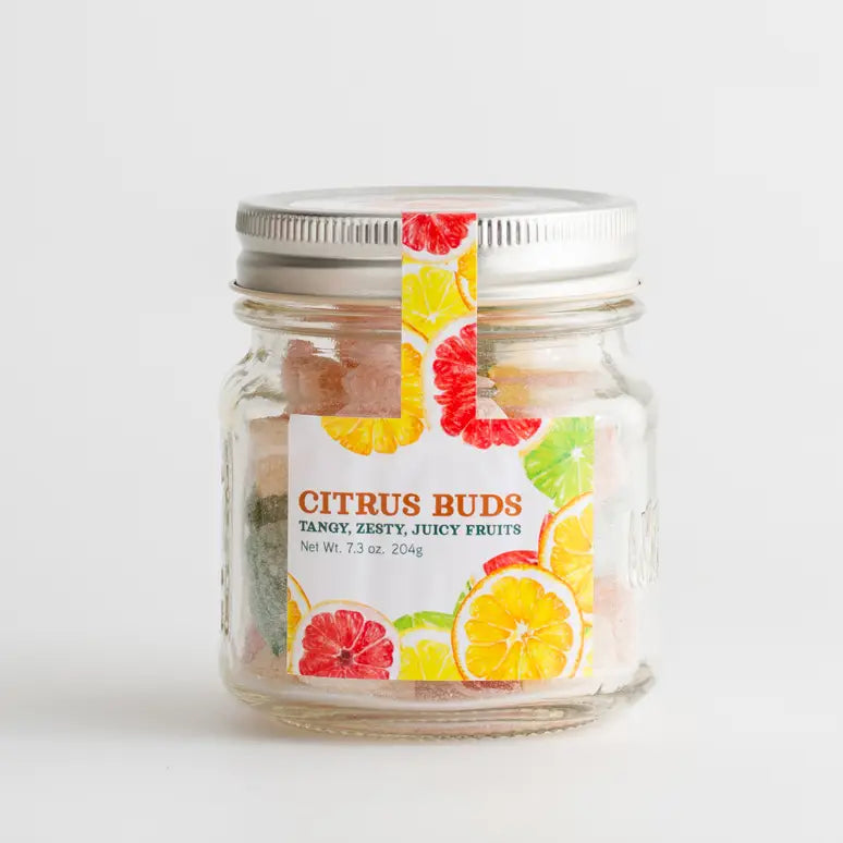 A delicious mixture of our zesty, tangy fruits. Lemon, Keylime, Honeybell Orange, and Pink Grapefruit! These hard candies are the perfect after-lunch treat, so refreshing and soothing at the same time. The mason jar is a classic mason with imprints on all sides, a wonderful item to store more candies after they have disappeared from the candy jar!