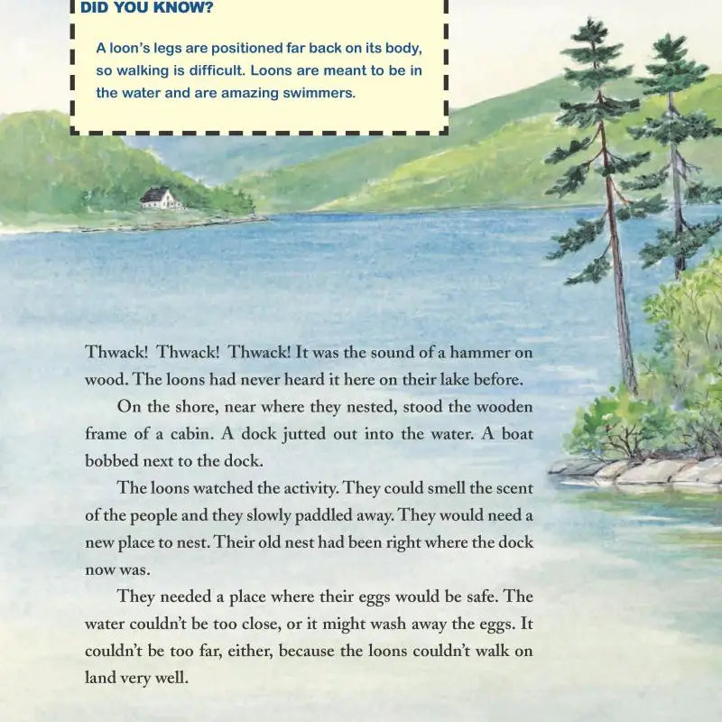 Little Loon traces the birth and first summer of a loon chick on a New England lake, ending with the loon’s migration for the winter. Readers follow along as the baby loon grows and discovers the world around her. Along the way, they’ll learn that loons are so perfectly adapted to life in the water that it’s very difficult for them to walk on land. They only come out of the water to lay eggs, so their nests are built are very close to shore and are very susceptible to flooding in heavy rains. Readers will also discover that the biggest threats to loons come from people—boats, pollution, and fishing tackle. Lavishly illustrated in full color, the book closes with a page of pertinent loon facts and ways for children to help protect this beloved waterfowl. Hardcover, 32 pages.