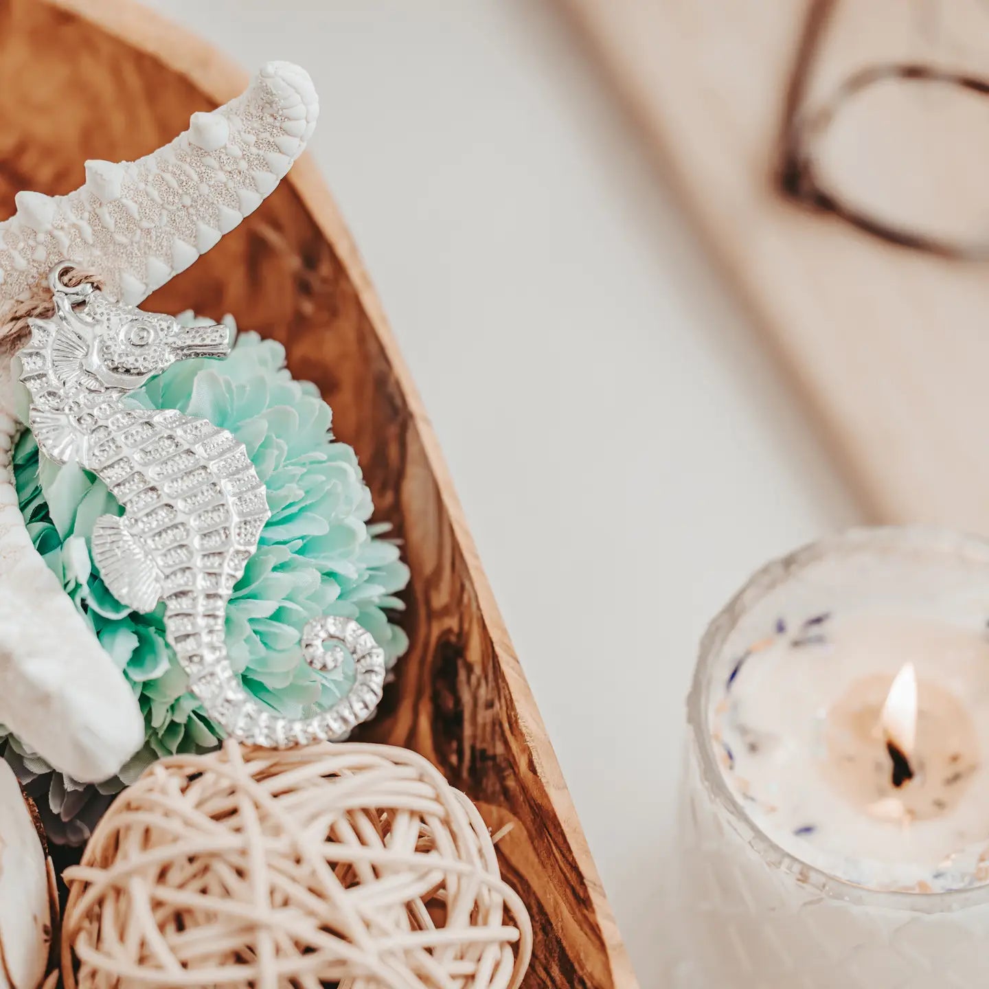 North Carolina handcrafted pewter nautical designs with our rustic brown ribbon to add a little beachy splash to any home decor.
