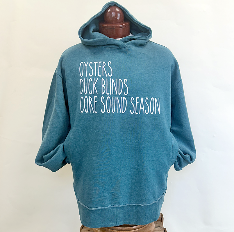 Clairmont Long Sleeve Mélange Hooded Round Bottom with Side Pockets w/ "Oyster, Duck Blinds, Core Sound Season"