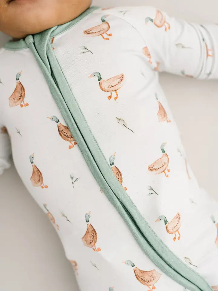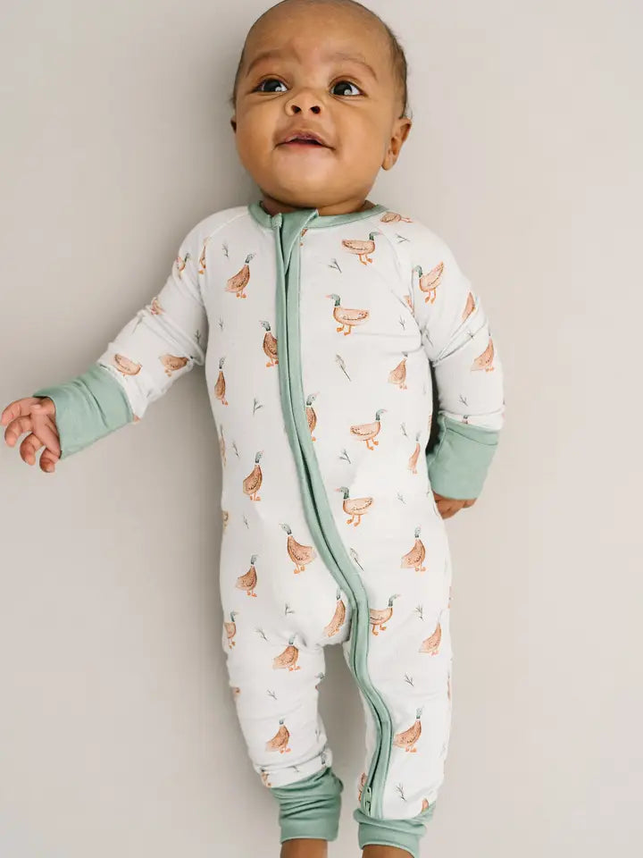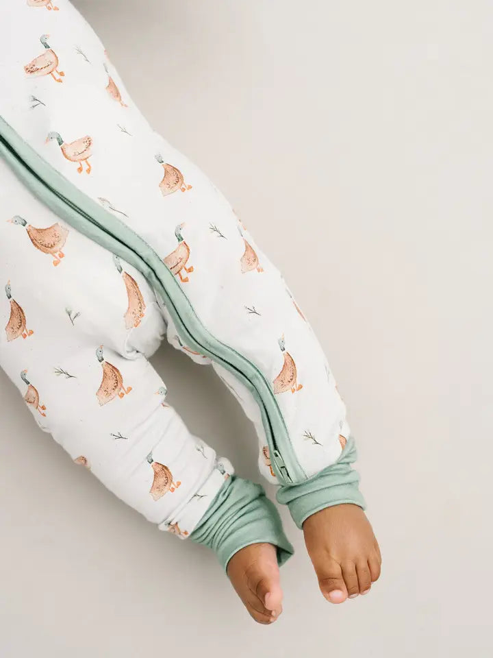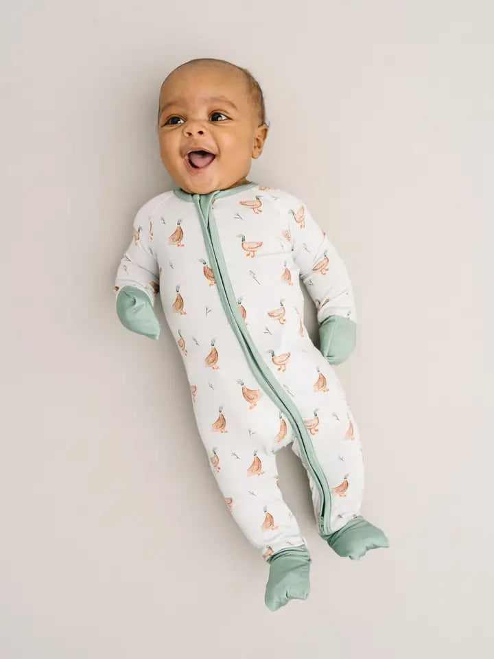 Buttery soft, lightweight, breathable, and stretchy Fold over mittens up to 12-18M Fold over footies Features a 2-way zipper for easier changes Designed with a snug fit for safety Fabric: 95% viscose bamboo, 5% spandex No flame retardants or chemicals Machine wash, tumble dry